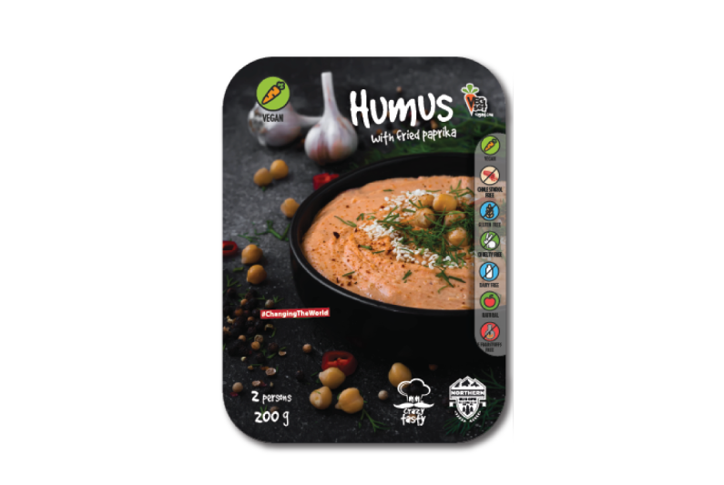 EN Ingredients: chickpeas, paprika, vegetable oil, tahini, lemon juice, garlic, minced coriander, salt.